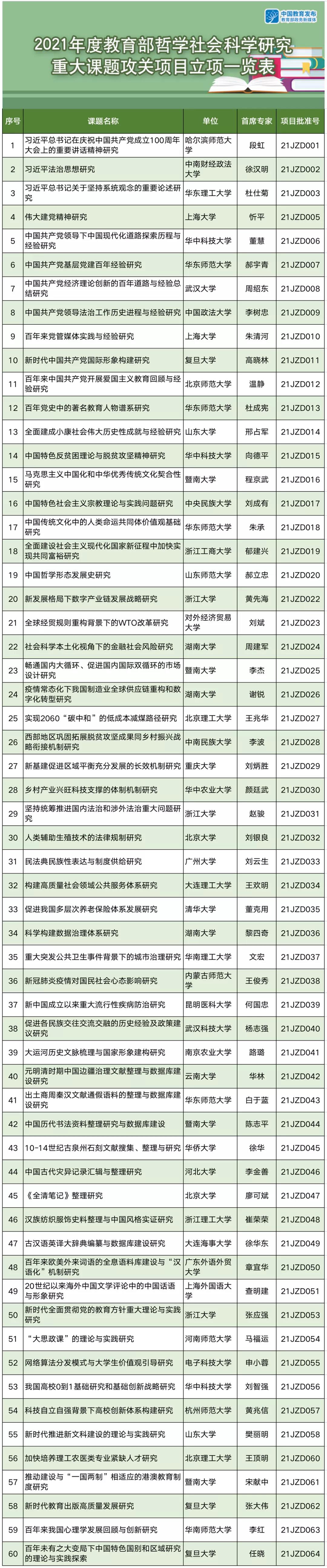 近日,教育部公布了2021年度教育部哲学社会必威app-必威手机app下载-必威伙伴 重大课题攻关项目立项结果,共有60项批准立项。其中,哈尔滨师范大学、华东师范大学、北京师范大学、山东师范大学、杭州师范大学、河南师范大学、华南师范大学(按立项顺序排序)等师范类院校多项课题以及我校“新冠肺炎疫情对国民社会心态影响研究”获批。