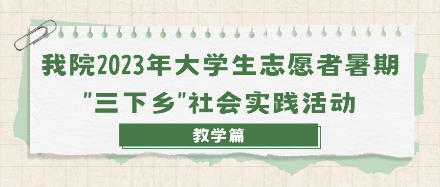 我院学子们通过认真的备课及教学让小朋友们的课堂生动有趣、富含知识性。我院学子们也纷纷表示,希望自己在“三下乡”社会实践活动中丰富自己,锻造自己,用青春与汗水演绎青春的精彩!