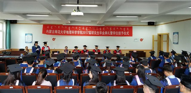 2017年6月29日下午三点,我院在文史楼一号会议室举行2017届研究生毕业典礼暨学位授予仪式,由党总支副书记(主持工作)、副院长张裕凤教授主持仪式,参加学位授予仪式的还有校党委副书记、纪委书记高云峰研究员,地理科学学院院长包玉海教授,副院长乌兰图雅教授,党委委员、党办主任布仁教授,betway精英版