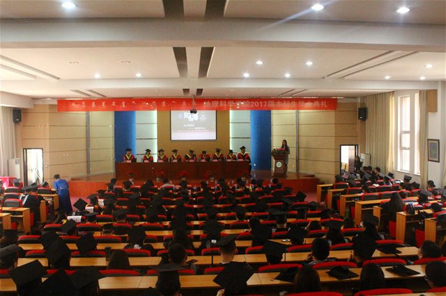 又是一年毕业季、又是一年丰收时,5月12日上午,地理科学学院2017届本科生毕业典礼在盛乐校区科技楼报告厅隆重举行。betway精英版 党委副书记、纪委书记高云峰研究员,betway精英版 学生工作处处长斯钦研究员,betway精英版 就业指导处副处长王志强教授,地理科学学院院长包玉海教授,地理科学学院党总支副书记、副院长张裕凤教授以及学院部分教师代表、毕业班全体班主任和毕业生参加了典礼。