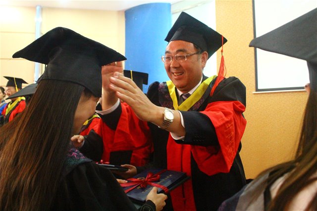 党委副书记、纪委书记高云峰研究员代校领导致辞,并从三个方面给全体毕业生予以嘱咐和期望:1.学习永远没有毕业。求知是光明的旅程,只有起点没有终点,只有通过学习才能紧跟时代的步伐,永远记住淘汰你的是时代而不是你的竞争对手。要让学习成为一种习惯,成为一种精神追求,不仅仅是学习书本上的知识,更应该向他人学习。学会学习,没有学习的艰辛,不会有成功,要时刻记住成功靠学习。2.永不言弃。生活远比我们想象的艰难苦涩,走出校园不仅仅是吃不到了一天25块的饭菜 一年900块的宿舍,更找不到的是那些为你付出的老师和同学们,一切靠我们自己。当我们身临困境时,要告诉自己再坚持一下,阳光总在风雨后,生活的美好要有耐心去等待。3.不要抱怨,无论顺境逆境永远不要抱怨自己的命运,一切都是最好的安排,所有的失败都是为了更好的美好到来腾出地方,所有的低头弯腰都是为高高跃起做准备,所有的破碎都是为了那个来之不易的圆满。他还说:“同学们,母校永远是你们的精神家园,无论何时、无论何地,母校都在注视你前进的脚步、奋斗的身影。作为老师衷心祝愿走出校园的你们依然踌躇满志、依然基情四射、依然心怀梦想,因为有你,母校有更多荣耀时刻被点亮;因为有你,母校有更多美好的故事到处传唱。再见了同学们!一生平安、永远平安,这是老师对你们永远的祝愿!”