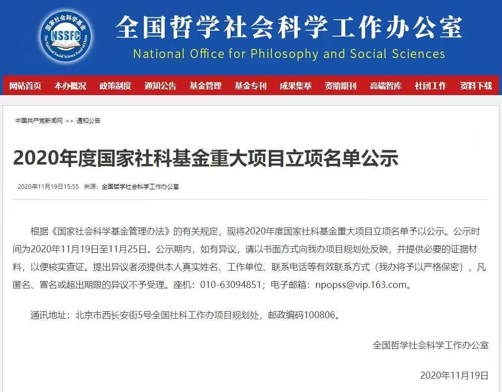 11月19日,全国哲学社会科学工作办公室公示了2020年度国家社科基金重大项目立项名单。此次公示的名单中共有342项,责任单位涉及全国131个高校和科研单位。