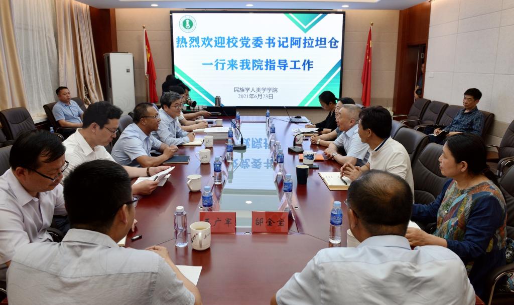本网讯 6月23日下午,校党委书记阿拉坦仓,党委委员、组织部部长褚亚申及相关部门负责同志深入民族学人类学学院调研指导工作,并与学院领导班子成员及教师代表进行座谈。