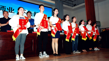 优秀实习生表彰总结大会于7月2日在海勃湾区一中隆重举行。乌海市海勃湾区区委组织部部长张立明、副区长崔洪波以及海勃湾区教育局、各基地校相关负责同志,我校副校长张海峰及相关学院领导和指导老师,海勃湾区全体实习生参加了表彰大会。