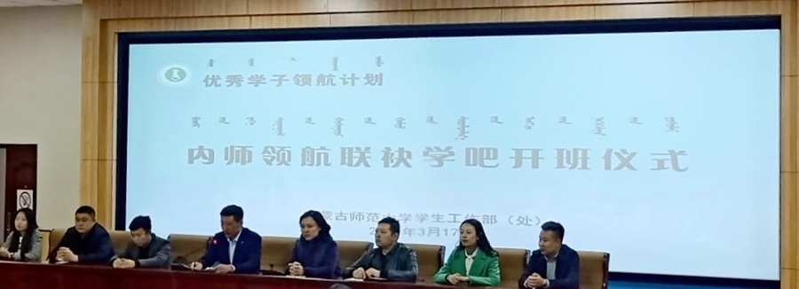 学工部讯3月17日下午,学生工作部(处)联合外国语学院在盛乐校区学生事务中心一楼报告厅举行“优秀学子领航计划——联袂学吧”开班仪式。学生工作部相关负责同志及部分学院分管学生工作负责同志、辅导员参加了开班仪式。