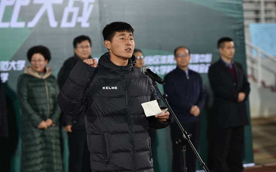 我校校长云国宏在开幕式讲话中指出,多年来,内蒙古大学与betway精英版 保持着良好的校际友好合作关系,在校园足球工作方面开展了大量工作,走在自治区高校足球工作的前列。两校足球队奋力拼搏,保持着较好的战术水平,在区内外各类比赛中均有上佳表现。2016、2017年,两校连续两年成功组织了“体彩杯”德比大战,通过比赛,培养了队员积极向上、勇于拼搏、不怕困难、吃苦耐劳的精神。此次比赛是该项赛事的第三届,也是两校广泛交流、增进友谊、共同提高的又一次重要机遇,同时也将对加快推进自治区高校足球人才的培养和自治区高校足球改革发展起到积极的促进作用。