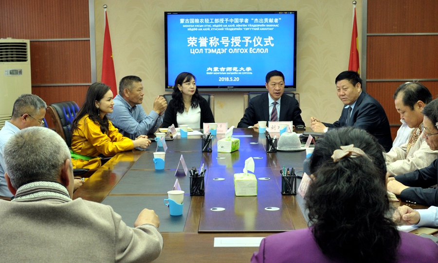 5月20日,在我校举行的荣誉奖章授予仪式上,蒙古国科学院植物保护所所长宾巴苏荣博士代表蒙古国粮农轻工部向中国三位学者授予荣誉奖章,并颁发证书,我校副校长刘九万出席仪式并发表了热情洋溢的讲话。