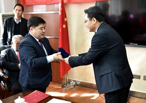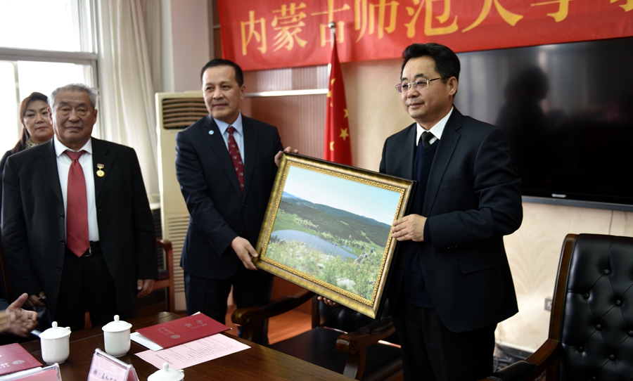 蒙古国代表向我校赠送纪念品