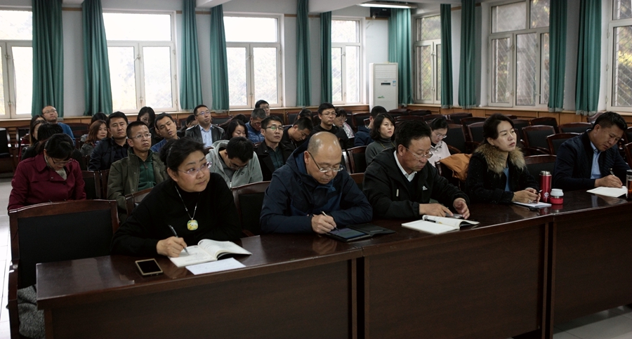 本网讯为及时学习宣传领会党的十九大报告精神,10月25日下午,校党委委员、宣传部部长张宝成应邀为党政总支的党员同志们作了《党的十九大报告解读》专题报告。报告从大会的主题、大会的历史意义、十九大报告的结构与亮点等方面做了详细解读。14个党支部的80多名同志参加了学习会。党政总支副书记吴爱华主持报告会。