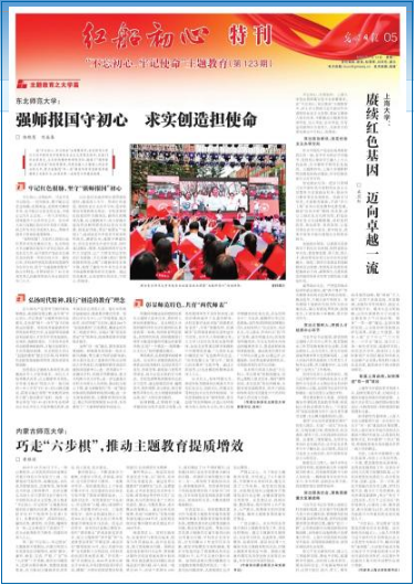 广宣以暖心。充分利用各类媒介做好主题教育宣传工作,营造良好氛围。建立主题教育专题网站,分设学习研究、先进典型、调研整改、权威资料、基层动态等7大模块刊发主题教育相关讯息,印制主题教育简报近70期。围绕主题教育撰写各类评述性文章等近20篇,并在学校官网及时推送。