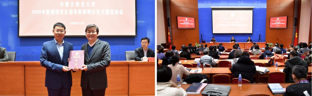 本网讯 12月10日,我校举行2020年新增研究生指导教师聘任仪式暨培训会。校党委副书记、校长、校学位评定委员会主席阿拉坦仓出席仪式并讲话。学校2020年新增研究生指导教师、研究生院及各学院有关负责同志、各学院研究生教学秘书参加会议。