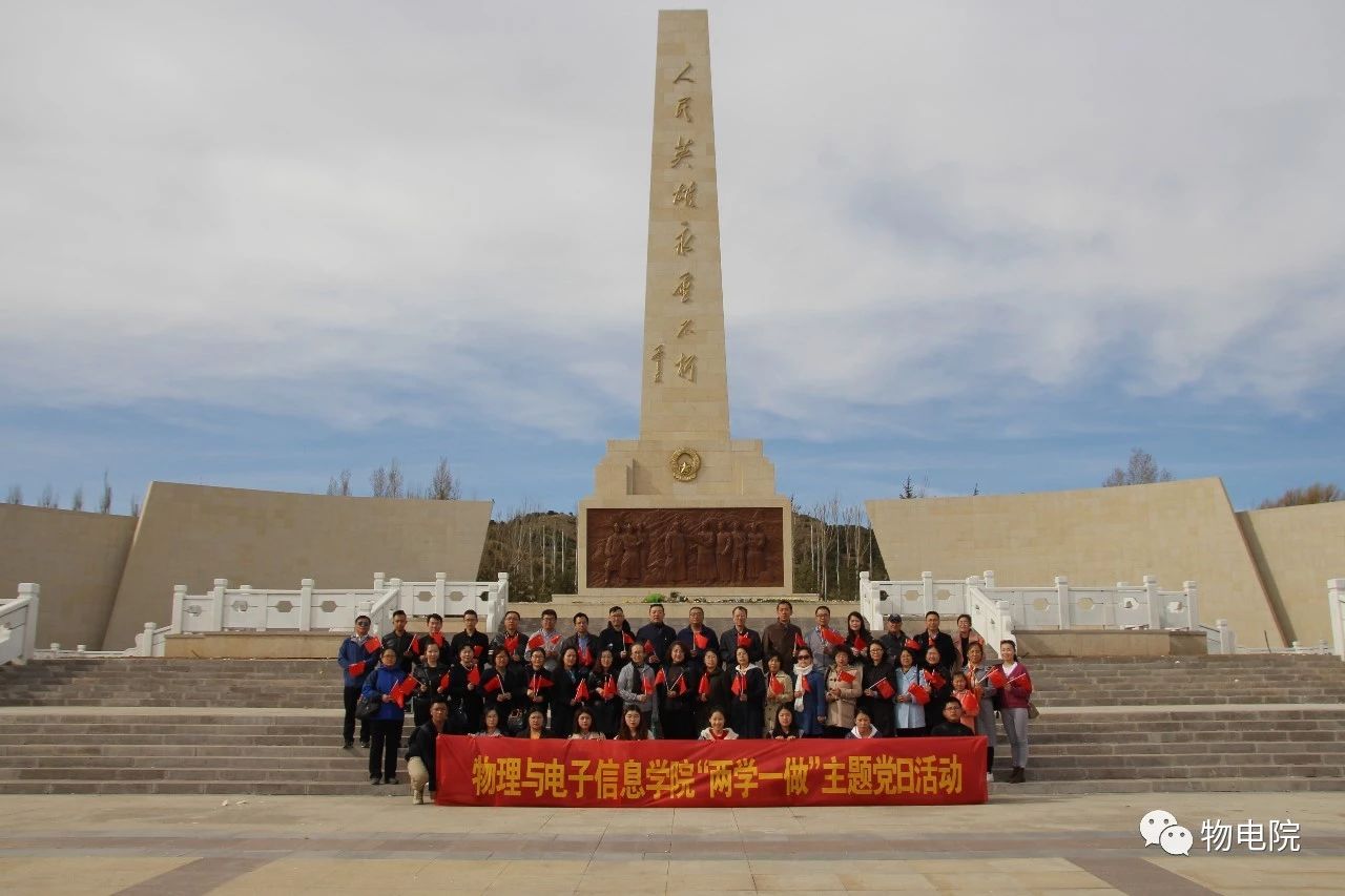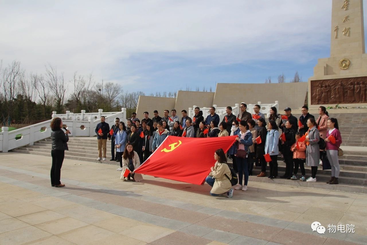 本网讯:为深入学习宣传贯彻党的十九大精神,持续推进“两学一做”学习教育常态化制度化,在清明节即将来临之际,4月4日下午,物理与电子信息学院全体教师以及学生党员代表赴大青山红色文化公园开展了“缅怀先烈,致敬英雄”主题党日活动。目的是悼念革命先烈英雄,继承和发扬革命优良传统,凝聚全院上下力量,积极投身教育事业。活动现场,全体师生手拿国旗,奏唱国歌,在英雄纪念碑前,肃立默哀,向纪念碑献花、鞠躬。学院党总支副书记张伟主持活动,党总支书记刘美玲致祭奠辞,并号召全院师生都要崇尚英雄,捍卫英雄,学习英雄,关爱英雄;牢记使命,不忘初心,进一步发扬爱岗敬业、无私奉献的崇高精神,在未来的事业道路上不怕艰险,艰苦奋斗。在大青山革命历史纪念馆内,全体师生仔细观看各类珍贵文物、文献、照片等资料,认真聆听讲解员的现场讲解,大家真切感受到了革命先辈勇于斗争、不畏牺牲、无私奉献的伟大精神,对革命先烈从心底产生一种敬佩与敬仰之情。最后,全体师生在纪念碑前合影留念。本次活动主题突出,意义深远,大家不仅对革命历史及英雄事迹有了进一步了解,也增强了自己在今后工作中的责任感和使命感。全体教职工一致表示要时刻牢记党的光荣历史和革命传统,以饱满的工作热情,更加务实的工作态度,全面推动教育事业的发展,为实现双一流建设目标努力奋斗!图文编辑:丁佳欣 校正稿件:刘静怡 责任审核:木其尔