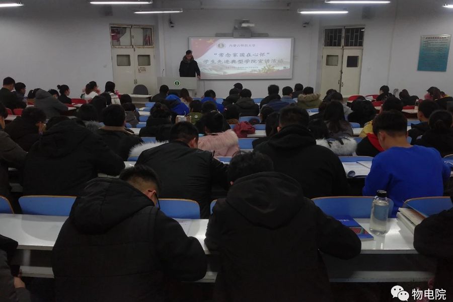 2018年12月10日下午,我院于田楼11共教室举行'' 常念家国在心怀''学生先进典型学院宣讲活动,由辅导员宋鑫伟主持,来自我院的七名品学兼优、思想端正的优秀青年进行演讲。此次活动旨在深入学习贯彻宣传十九大精神、习近平新时代中国特色社会主义精神,全面提高大学生综合素质。