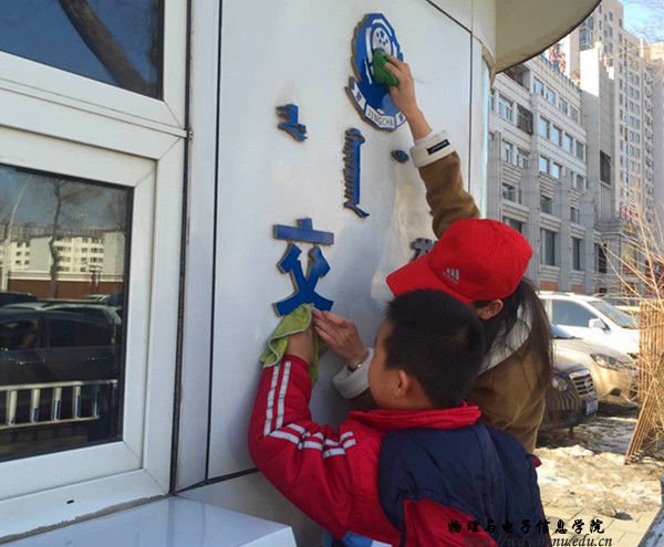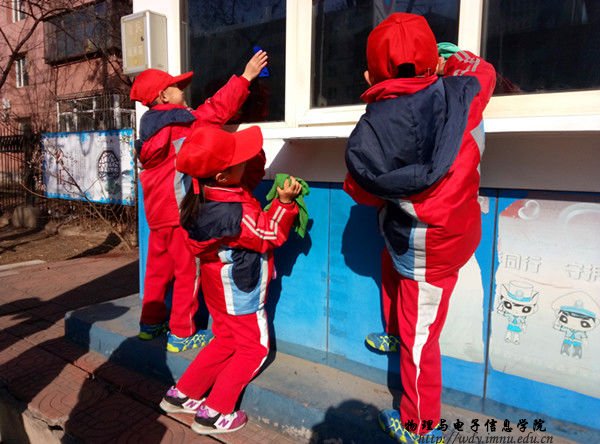 本网快讯为了弘扬雷锋精神,培养同学们勤于劳动,乐于奉献的良好品质,2017年3月4日上午,我院正e联盟组织志愿者以及南门外小学的同学们进行大手拉小手擦岗亭活动。我院团总支书记萨其尔老师,学工办苏雅拉老师和塔林托亚老师,以及30名志愿者和16名南门外小学的同学参加本次活动,并由礼仪志愿者部部长李雪同学主持活动启动仪式。