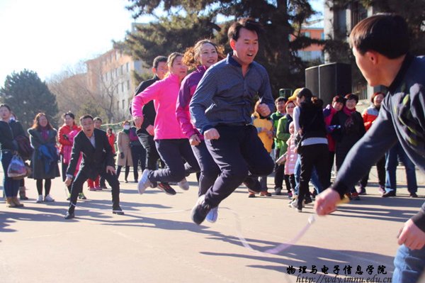 在党委副书记高云峰温情的话语下,为此次活动拉开了序幕。随着哨声的响起,我院老师们都踊跃参加到活动中,只见“毽影飞扬”,“绳腾人越”,“力拔山河”的画面组成了这次活动最欢乐的时刻。最终,我院获得了集体拔河比赛二等奖、办公室主任斯琴高娃老师跳绳比赛个人二等奖的佳绩。