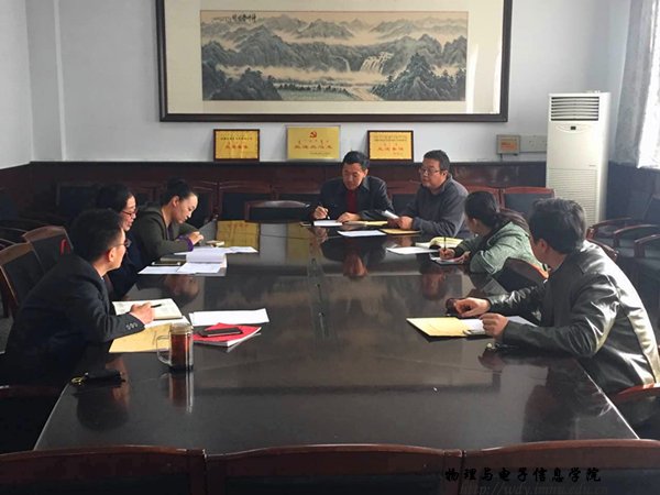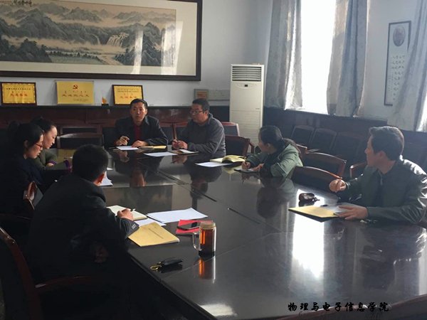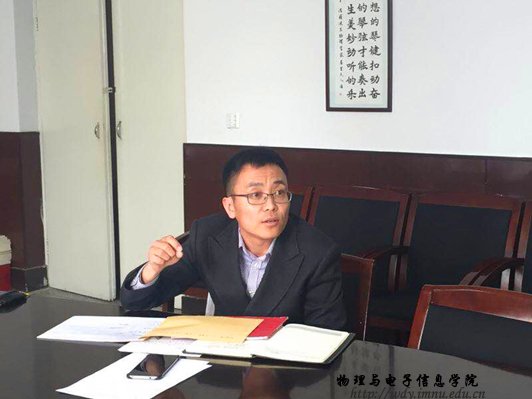 本网讯为了引导2017年应届毕业生树立正确就业观,提高自身就业竞争力。2017年3月16日下午,物理与电子信息学院党总支副书记何小龙老师在物电楼会议室主持召开了毕业生就业研讨会,我院团总支书记萨其尔老师、学工办塔林托亚老师、苏雅拉老师以及各毕业班班主任出席了此次会议。