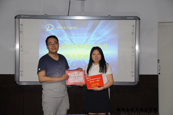 本届学术科技文化月活动共征集36件作品,通过一审共筛选出17件设计制作类作品、4件论文类作品。首先进行的是设计制作类作品答辩环节,在答辩过程中,选手们的作品展示配上他们锦上添花的说明,一件件作品变得活灵活现。其中,《脑电信号的获取与分析》、《基于stm32单片机及GPRS网络的智能环境监测设备》、《基于惯性传感器的视角控制》等作品设计巧妙新颖、技术程度高,受到了老师们的高度评价和悉心指导。当然,在参赛的作品里也存在着一些技术不成熟的作品,参赛选手们通过跟评委老师们的请教和讨论,多受启发,受益匪浅。论文类作品中也不乏有《Mn0.6Fe1.35P0.5Si0.5粉末样品的制备及X射线衍射分析》、《陶瓷材料的概述及增韧方法的研究》等内容丰富、专业性强的作品,赢得了评委们的赞赏。
