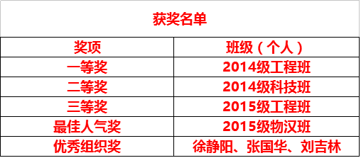 本届健身操舞大赛共10个节目,分别是我院大一到大二以班级为单位的参赛队伍,轻快的舞姿伴着动感的音乐,每一位参赛队员都用充满活力的舞姿给观众留下了深刻印象,展示了当代大学生的青春魅力。整场比赛精彩纷呈,高潮迭起,各参赛队队形变化多彩多样,赢得阵阵掌声,最终由14级工程班夺得本次桂冠,14级科技班和15级工程班分获二、三名。至此,我院健身操舞大赛已经成功连续举办两年
