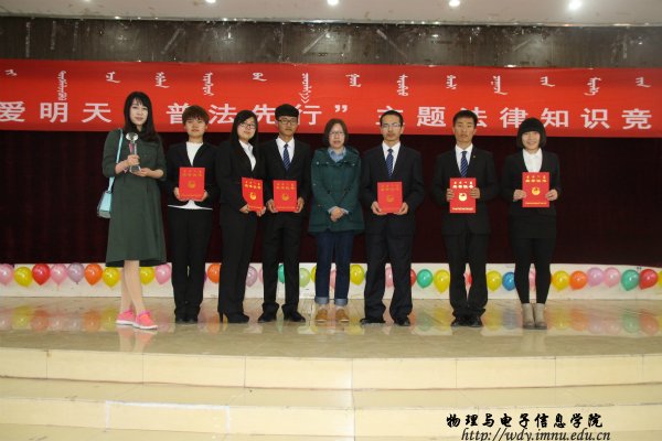 本网讯2016年4月27日下午,我院六名参赛选手在学工办王星老师的带领下,参加了在盛乐校区举办的校级“关爱明天普法先行”主题法律知识竞赛。