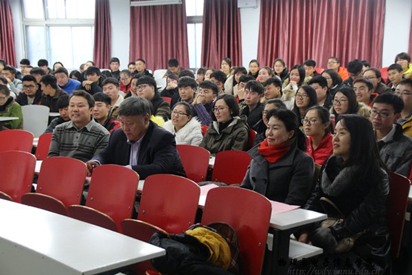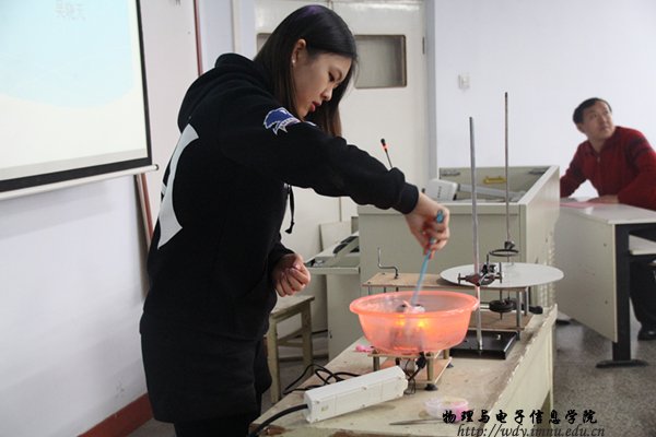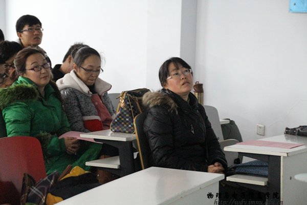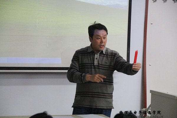 会议共分为五个环节,首先,曹老师向大家介绍了参会的领导老师,并就本次教育实习情况进行了简要的叙述。第二环节,大会有请了在教师技能大赛中表现出色的研究生吴晓天、12物理汉班刘爽、12物理蒙班赵丽娟三位学生,分别为同学们讲了十分钟的示范课。随后孟根巴根老师对三位同学的示范课进行了细致的点评与指导,指出同学们讲课过程中的不足和改进方向。大会第四项,由教育实习优秀学生代表来自12级物理汉班赵倩和12物理蒙班呼布青两位同学向大家讲述了教育实习过程中的心得体会。最后,我院副院长吉日嘎拉教授对本次大会进行了深刻的总结,大会在同学们热烈的掌声中结束。