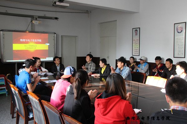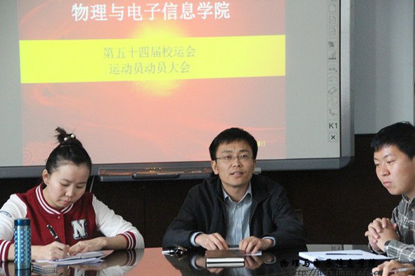 本网讯2016年4月8日下午,我院在物理楼会议室召开了第五十四届校运会运动员动员大会。我院党总支副书记何小龙老师、团总支书记萨其尔老师、学工办苏雅拉老师及教练员出席本次大会。会上何老师明确指出在训练当中的注意事项,并鼓励运动员们全力合作、友好相处、加强训练、取得优异成绩,为学院增光添彩。随后萨其尔老师说明了相关奖励措施同时强调工作人员积极做好后勤保障工作。最后教练员对训练计划进行了具体的强调和说明。