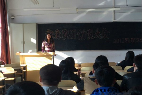 本网讯2015年10月14日下午,我院在田楼120教室召开了12级物理汉班教育实习动员大会,出席会议的老师有我院副院长吉日嘎拉教授,实验创新部主任曹永军教授和12级物理汉班班主任李瑞芳老师。动员大会上老师们分别就实习的重要性、实习对于走向工作岗位的帮助以及实习时应该注意的事项进行了深入的讲解,并要求大家保质保量的完成实习任务。大会的最后吉老师鼓励大家珍惜机会,认真对待,争取通过实习使自己的能力得到提高。