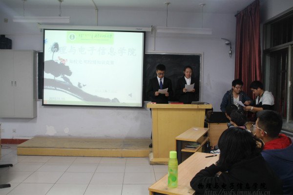 本网讯为迎接我校审核评估,同时也为丰富我院学生校园文化生活、开拓同学们的视野,2015年11月15日我院在田楼111举办了以“知校史,明校情”为主题的知识竞赛活动。比赛分为三个阶段,第一阶段为必答题、第二阶段为抢答题、第三阶段为风险题。最终,我院15级物理汉班的任耀同学凭借优异的表现、现场的应变能力以及对学校的深刻了解荣获了第一名。此次活动既丰富了我院学生们的校园文化生活,又为同学们提供了一次锻炼的机会,激励了更多同学们积极参与到各项活动。