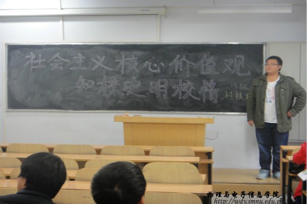 为积极迎接我校本科教学审核评估工作的开展和营造良好的迎评氛围,积极响应校团委关于开展“知校史,明校情”主题教育活动要求,全面围绕社会主义核心价值观开展相关活动。我院决定在各班级开展以“知校史、明校情”为题的主题班会并持续深入开展有关社会主义核心价值观的系类团日活动,