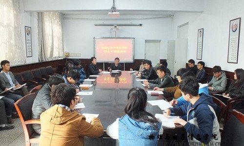 会议开始,何小龙老师首先明确指出本次会议旨于通过与学院学生干部的交流和沟通,进一步更好的了解学院各班级学生所遇到的问题和内心想法,从而在学生工作方面加以改进和创新,使学生工作变得更加完善和科学;随后,各位学生干部积极踊跃地和老师进行交流沟通,各抒己见,并提出自己和本班学生所遇到的问题,表达自己对学院工作的看法与期望;最后,何小龙老师对本次会议进行了总结并对今后的工作进行了展望。此次会议是一次解决问题、团结合作的会议,相信此次会议一定会凝心聚力、继往开来,不断为我院学生工作开创新局面!