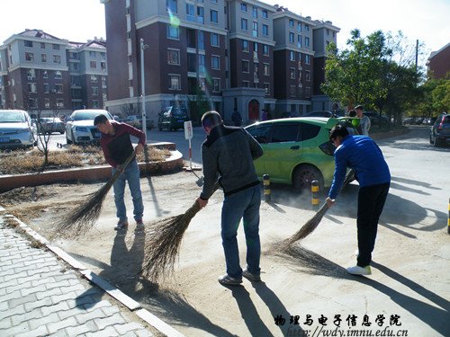 本网快讯2014年11月6日下午,我院预备党员在党支部工作人员的带领下一起来到东苑小区参加社会实践活动。活动内容包括为小区居民维修家电、打扫街道等。大家齐心协力把街道上的落叶都扫向路边,草坪中的垃圾都被收集到垃圾袋里,小区的面貌焕然一新;随后,预备党员们为小区居民维修了收音机、台灯、扩音器等生活电器。修理过程中,大家相互合作,克服困难,修理一件又一件的家用电器。通过这次社会实践活动,预备党员们更加明白了成为一名合格党员的意义——就是要无时无刻为人民服务。把自己的青春与热血奉献给党,为早日实现伟大复兴的中国梦而贡献自己的力量!