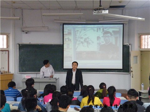 2014年4月17日下午,我院热情邀请到了计算机与信息工程学院党总支书记辛智俊老师在田楼七共为我院入党积极分子做了一次关于“信仰的力量”专题讲座,我院党总支何小龙副书记担任主持,团总支萨其尔老师出席本次讲座。
