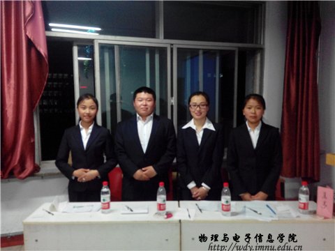 2014年4月28日晚七点,“盛乐杯”辩论赛赛罕区决赛在田楼223教室如期举行,汉语组决赛由于对方弃权,我院提前进入决赛,我院蒙语组辩手作为正方和化学与环境科学学院的反方辩手围绕“真理是否越辩越明”这一辩题展开激烈舌战。最终,我院蒙、汉语组双双顺利晋级总决赛。