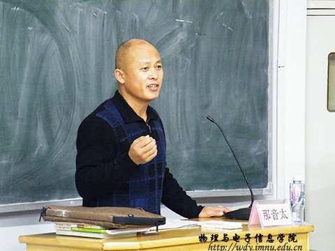 为帮助我院师范生更好的规划自己的教师职业,11月30日下午,我院特邀鄂尔多斯市鄂托克前旗职业高中高级教师那音太老师于田楼八共为大一至大四的物理蒙班同学们进行了关于“如何更好的规划自己的教师职业”的专题讲座。出席此次讲座的有孟根巴根老师、哈斯朝鲁老师和萨其尔老师。