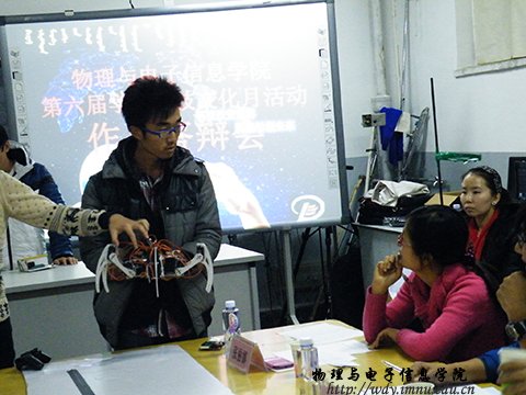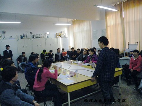 2013年12月12日,我院第六届学术科技文化月活动——学生课外学术科技作品竞赛评审答辩决赛(电子系)在物理楼407如期举行。此次答辩共有20位选手入围,答辩作品类型分为设计类和发明类。此次决赛的评委老师有副院长刘美玲老师、党总支副书记何小龙老师、梁学军老师、海鹰老师、张丽娜老师、杨帆老师。