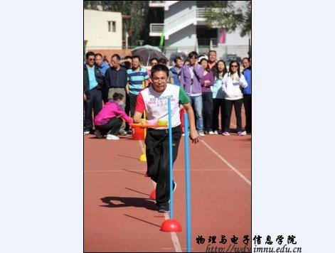 本届运动会有:100米、曲线运水、背媳妇、800米、双人背球、铅球、标枪、飞碟、十字跳、立定跳远等众多项目。我院教师都积极参与其中。每一个比赛项目都可以锻炼大家动手动脑的能力也可以锻炼大家在工作中能够团结协作的精神,这不但是智慧和体力的角逐还是团结和协作的完美比拼。