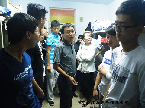 走进学生宿舍,看着学生的整齐的被褥,干净的桌椅,何老师在表示满意同时提出更高的要求。紧接着,老师又把更多的时间放在了对学生生活的慰问上.询问大家,饭菜是否合口、天气是否适应、舍友之间相处是否融洽等问题.老师特别提醒新生要注意寝室用电安全、财产安全和交通安全等问题。