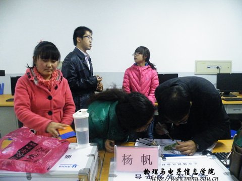 20121124日晚7点,帆老师在物电楼215室为本次科技文化月申报作品的同学进行现场指导。
