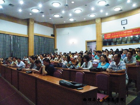 上午9:30,我院在信息楼报告厅举行了“迎母校六十周年校庆”系列讲座,此次讲座邀请到我院89级物理学汉授班校友,现就职于内蒙古自治区地震局卓力格图副局长,一位曾经奋战在汶川抗震救灾工作第一线的抗震英雄。会场上座无虚席,物理与电子信息学院党总支书记阿梅老师、院长特古斯教授、副院长吉日嘎拉老师、副院长刘美玲老师、党总支副书记何小龙老师以及学院的全体教职工、研究生、本科生共计200余人聆听了此次讲座。