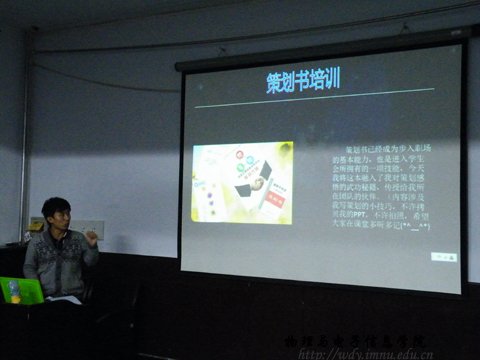 培训过程中,马翔部长利用PPT详细认真地向大家阐述了书写策划书的的各个步骤,将他丰富的经验和技巧一一传授给大家。全体与会人员都认真地聆听并做了详细的记录。培训结束后,学生会主席随机提问了几名同学,了解了大家此次培训的收获以及对此的想法和感受,大家都纷纷表示不仅学会了如何写好策划书,也学到了很多以前不懂的知识。日后,学生技能培训还会继续开展。