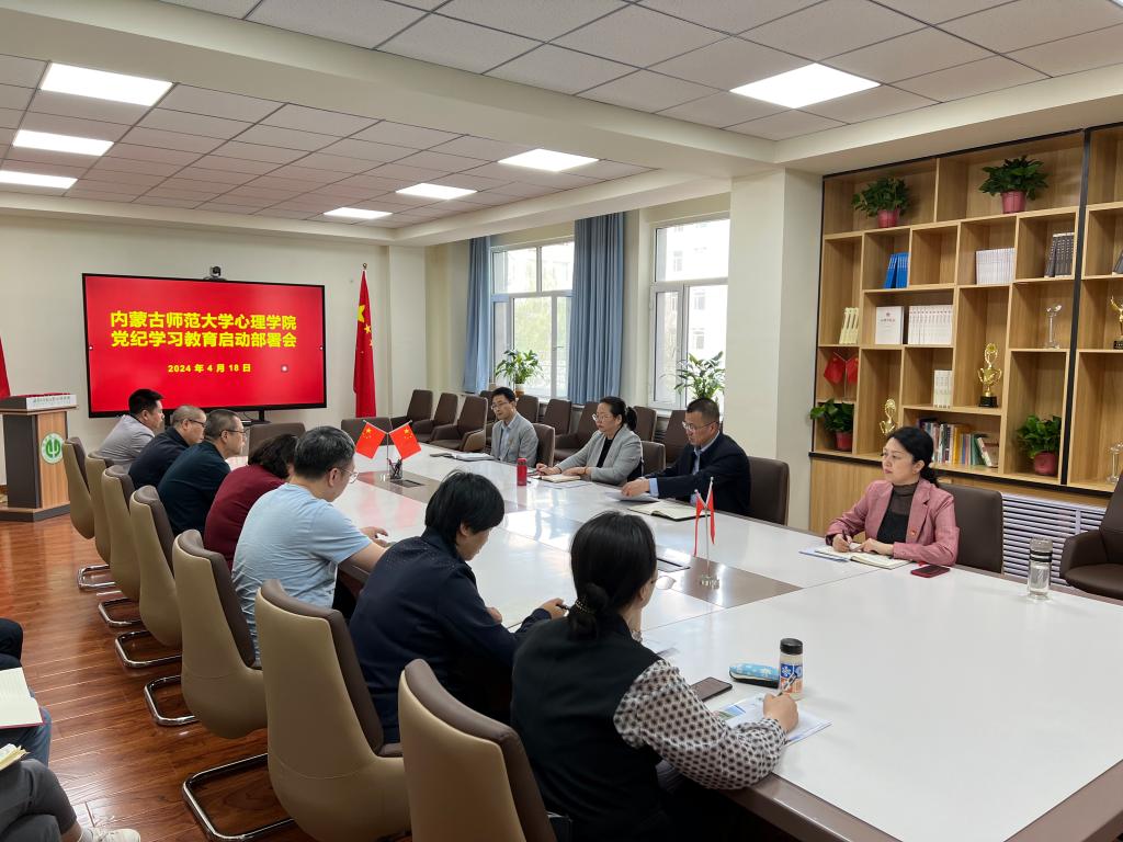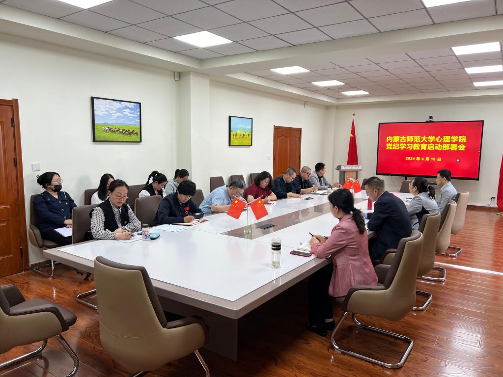 按照学校党委党纪学习教育统一安排部署,4月18日,心理学院党纪学习教育启动部署工作会在盛乐校区学院楼B222会议室召开。学院领导班子成员、环节干部、党支部书记和部分党员教师参会。学院党委书记侯友主持会议并作工作部署。