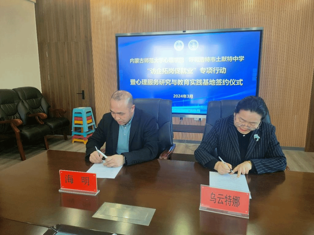 与呼和浩特市土默特中学签署心理服务研究与教育实践基地建设协议