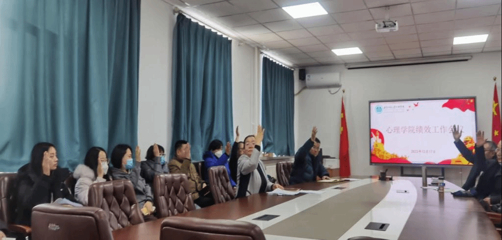 经过学院全体参会教职工讨论后,举手表决通过了《2023年度心理学院岗位绩效考核与业绩绩效量化细则》。