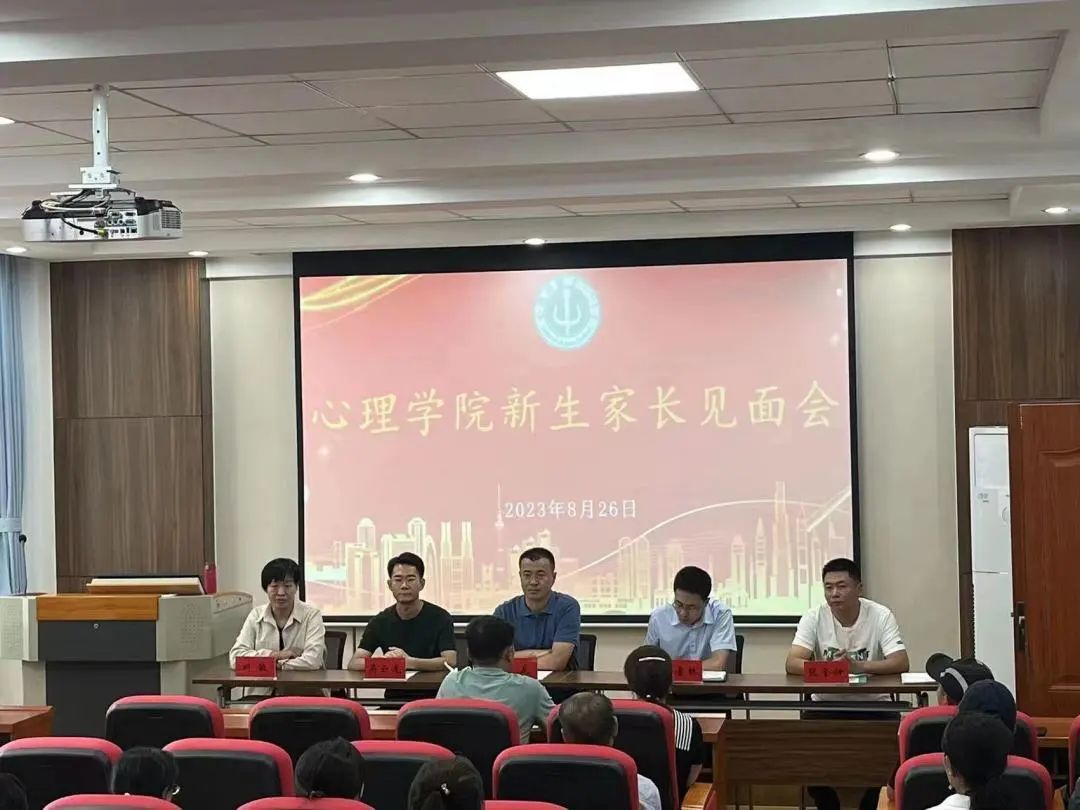 为加强家校间的积极沟通,实现家校共育的目的,8月26日下午,心理学院在学院楼A206报告厅召开2023级本科新生家长见面会,学院党委书记侯友、副院长金童林、学就办主任张金钟,团总支书记刘敏,班主任吴云龙以及新生家长参加。会议由副院长金童林主持。