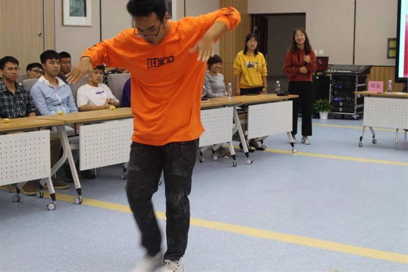 第二个环节,采用做游戏的方式,让同学们放松。包括两个游戏:“颠三倒四、七上八下”和“大风吹”。在游戏环节中,输了的同学要接受了“惩罚”,为了取得胜利,同学们都极力参与活动,专注的听着主持人的每一句话,唯恐自己没有反应过来。输了的同学,提前获得了展示自己的机会,或唱一首喜欢的歌,或朗诵一篇优美的段落……为了让氛围更加热闹,导员们也参与了游戏,场面其乐融融。