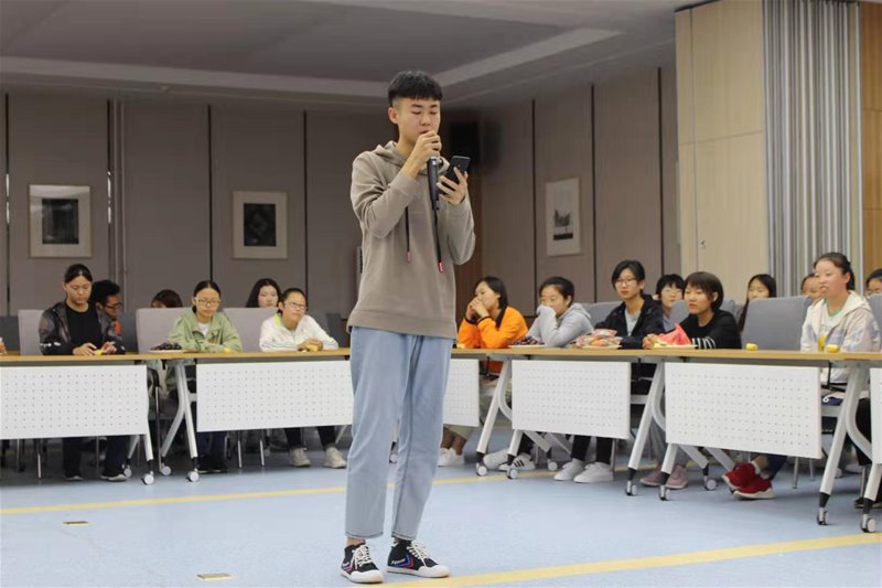 第三个环节,给同学们提供自我展示的平台。此环节中,19级同学们争先恐后,有同学演唱家乡中秋的蒙文歌;也有同学唱了毛不易的《消愁》;更有男女合唱,大家用歌声来庆祝中秋。18级的同学朗诵《相信未来》送给新生,并希望学弟学妹们能够相信未来。最后,由巩固老师演唱《往后余生》,用歌声表达对新同学到来的欢迎,也迎来了同学们热烈的掌声。