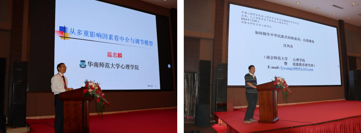 开幕式后,华南师范大学温忠麟教授、南京师范大学汪凤炎教授、上海交通大学李卫东教授、浙江大学周宵研究员和betway精英版 王欣瑜教授分别就《从多重影响因素看中介与调节模型》、《如何铸牢中华民族共同体意识:自我视角》、《AI 与脑机交互技术在抑郁中的探索研究》、《青少年创伤心理的变化特征及代际影响》和《深层文化结构视阈下的中国心理学本土化省思》等议题做了五场特邀报告,分享了民族心理学国内前沿科研成果和实践经验,为与会者奉献了一场高水平的饕餮盛宴。