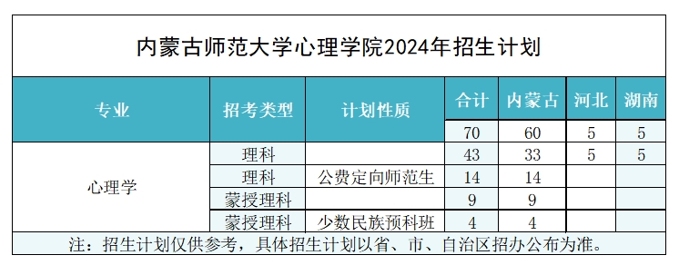 本专业立足内蒙古,面向全国,以铸牢中华民族共同体意识为主线,培养德智体美劳全面发展,热爱教育事业,具有良好的思想政治修养、人文道德素养、科学精神与社会责任感,具备心理育人能力和创新发展能力,能够在中学及各类教育机构从事心理健康教育教学、心理辅导与咨询及心理健康教育管理工作的应用型人才,同时也为心理学科以及其他相关学科输送高质量的研究生生源。